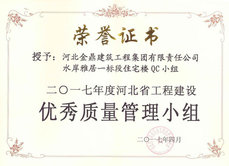 2017年水岸雅居優(yōu)秀質(zhì)量管理小組