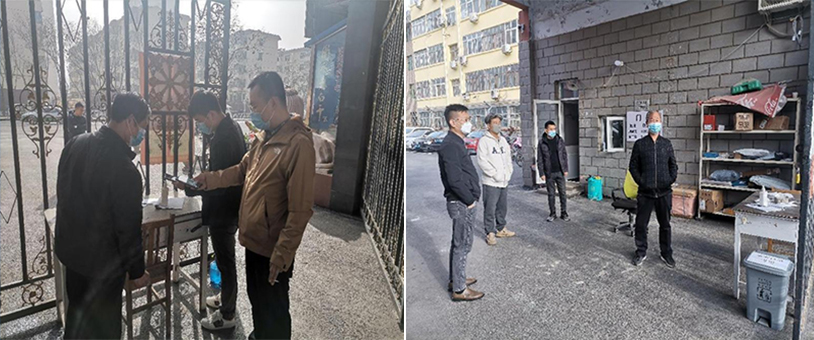 (圖為:董事長戴永強及副總經理邢亞寧巡視門衛防疫工作對外來人員的健康碼、行程碼、測量體溫、登記人員基本信息情況等)